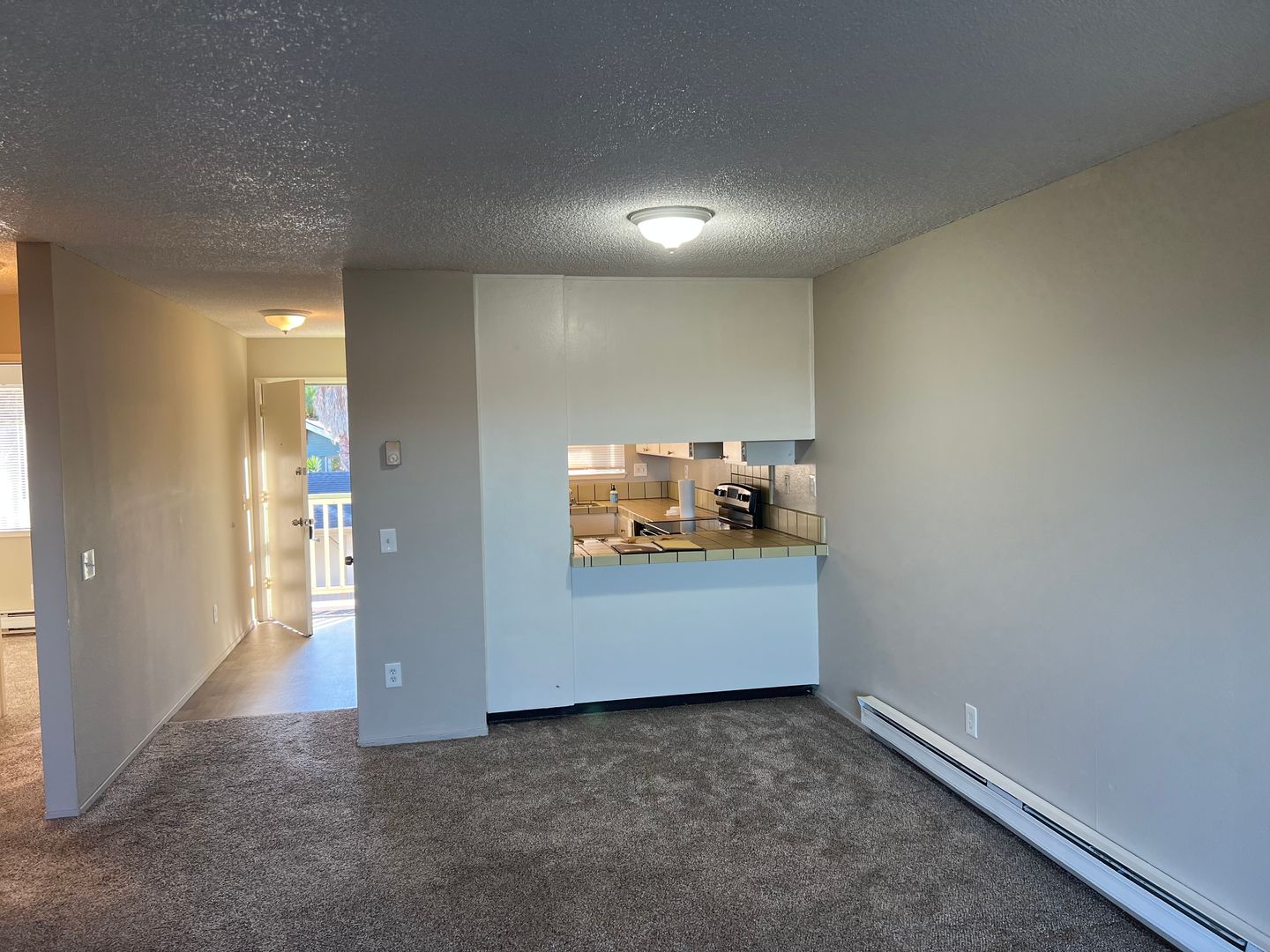 The newly painted unit features a functional floorplan with a combined living room and dining room.